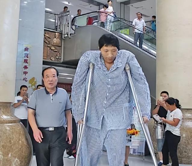 还有一位,是山东菏泽的徐福海,35岁,身高2米4,比姚明还高。9月1日,他也走了。这个大个子的人生,比小说还坎坷。14岁前,他跟普通小孩没啥两样,可15岁那年开始疯长,一年能窜20厘米。家里人一开始还高兴,觉得他能打篮球,当明星。可15岁摔了一跤后,麻烦来了。双腿肿得像馒头,走路都费劲。医生检查才发现,他脑子里长了个瘤,害得生长激素失控,身高一直涨到2米4。吃饭得吃15个馒头,睡觉得拼三张床,椅子也得特制,普通人坐上去脚都够不着地。